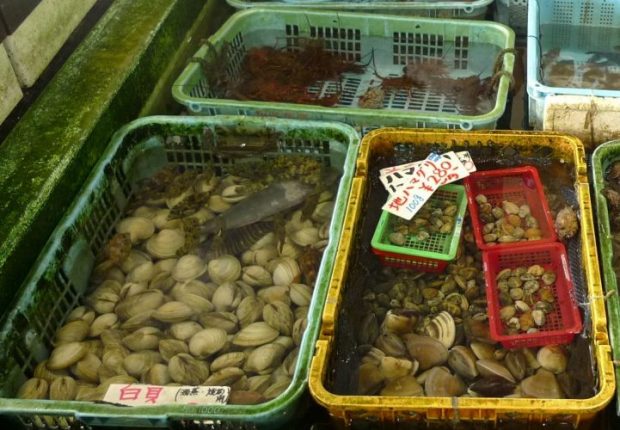 (写真上下)韓国の主流はホンビノスガイ.(ソウル:生鮮市場)