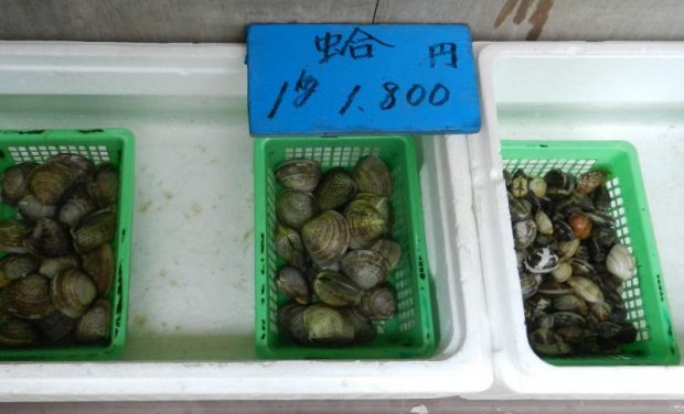 片瀬の蛤屋さんが売っていたのはスーパーで売られる中国産ハマグリより大型ですが、キロ1.800円。